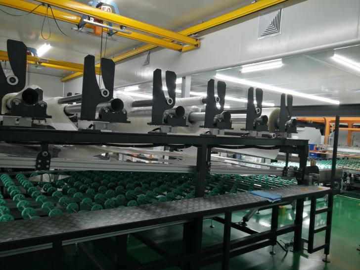 更換采用快捷式結(jié)構(gòu),托膜輥方便拆卸,換膜方便,省時省力,一人即可完成;收回膜采用電機驅(qū)動,變頻調(diào)速依膜筒大小任意調(diào)速;吊膜系統(tǒng)采用采用KBK滑軌式結(jié)構(gòu),電動鏈式葫蘆提升,該結(jié)構(gòu)使用方便靈活、安全可靠。